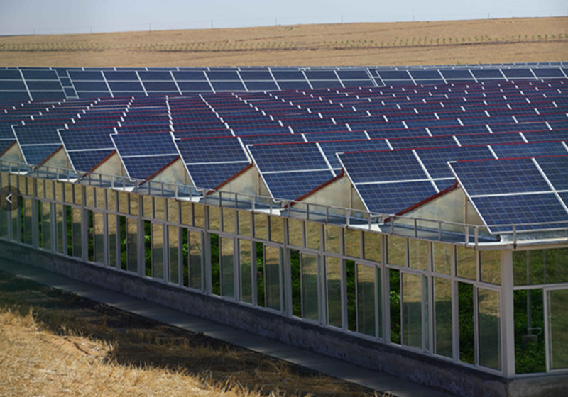 光伏農(nóng)業(yè)科技大棚是分布式光伏應(yīng)用的一種新的模式。與建設(shè)集中式大型光伏地面電站相比,光伏農(nóng)業(yè)科技大棚項(xiàng)目有諸多的優(yōu)點(diǎn)。首先,光伏農(nóng)業(yè)大棚利用的是農(nóng)業(yè)大棚的棚頂,并不占用地面,也不會(huì)改變土地使用性質(zhì),因此能夠節(jié)約土地資源;其次,通過在農(nóng)業(yè)大棚上架設(shè)不同透光率的太陽能電池板,能滿足不同作物的采光需求,可種植有機(jī)農(nóng)產(chǎn)品、名貴苗木等各類高附加值作物,還能實(shí)現(xiàn)反季種植、精品種植;利用棚頂發(fā)電不僅可以滿足農(nóng)業(yè)大棚的電力需求,還可以將剩余的電并網(wǎng)出售,增加收益。